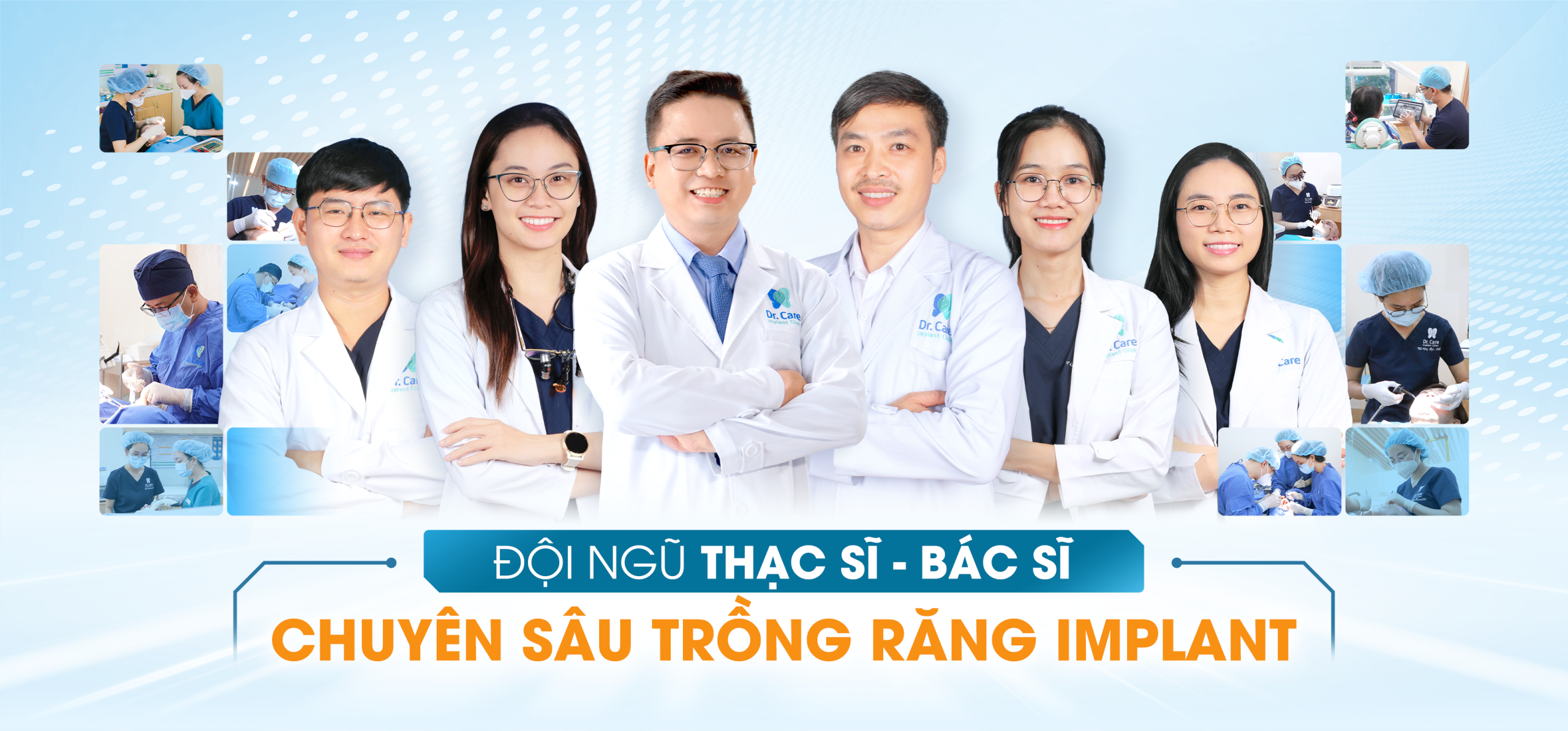 Đội ngũ Bác sĩ Dr. Care – Implant Clinic sẵn sàng đồng hành cùng Cô Chú, Anh Chị trên hành trình phục hồi răng đã mất bằng phương pháp Implant hiện đại và tiên tiến. Mỗi một điều trị răng miệng tại Dr. Care đều đảm bảo