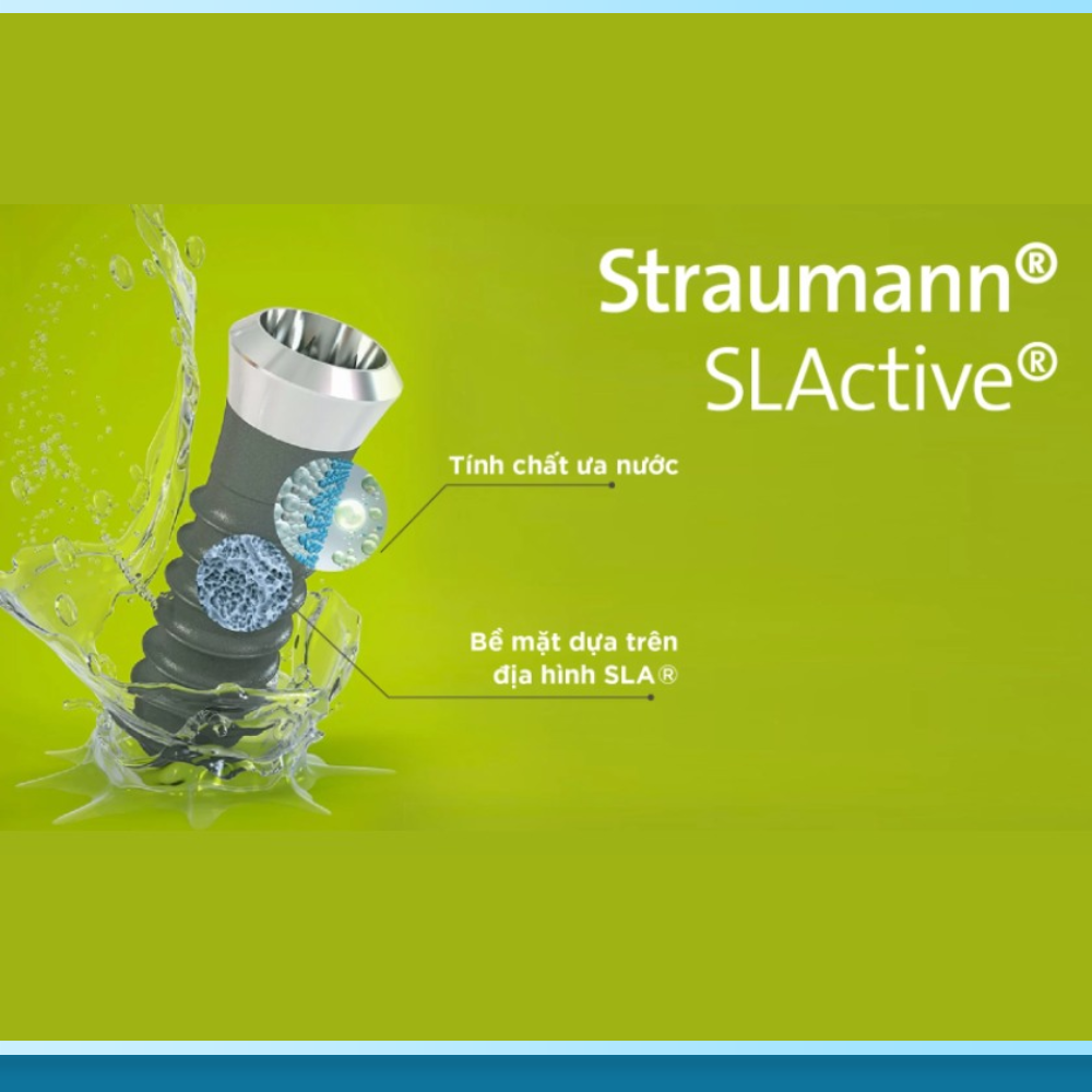 Đây là “vũ khí bí mật” làm nên tên tuổi của Straumann. Bề mặt của dòng trụ cao cấp SLActive có tính chất ưa nước (Hydrophilic). Khi đặt vào xương hàm, nó chủ động hút máu và các tế bào tạo xương đến bám dính ngay lập tức. Nhờ cơ chế sinh học này, thời gian tích hợp xương được rút ngắn kỷ lục, từ 3-6 tháng xuống chỉ còn 3-4 tuần, giúp bệnh nhân có răng ăn nhai sớm hơn rất nhiều.